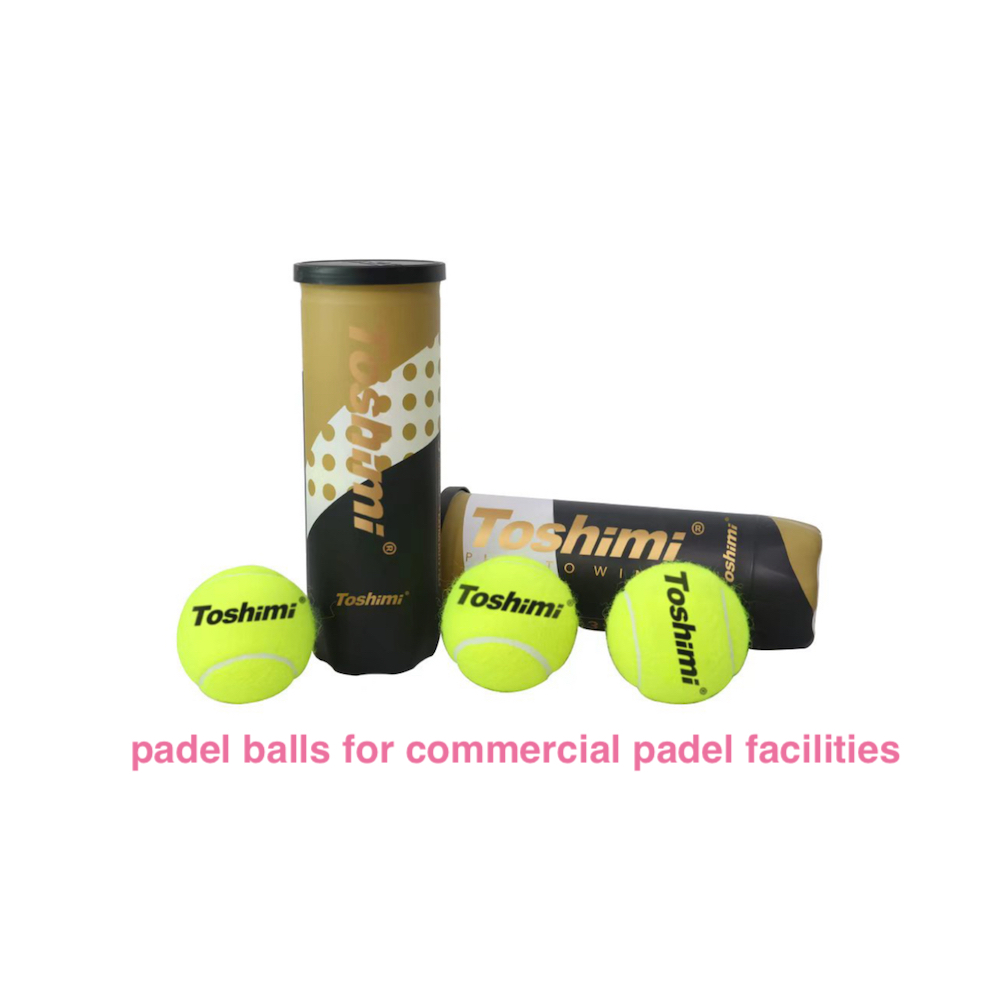 Toshimi Sports supplies padel balls and padel rackets for clubs, training facilities, and padel court projects.